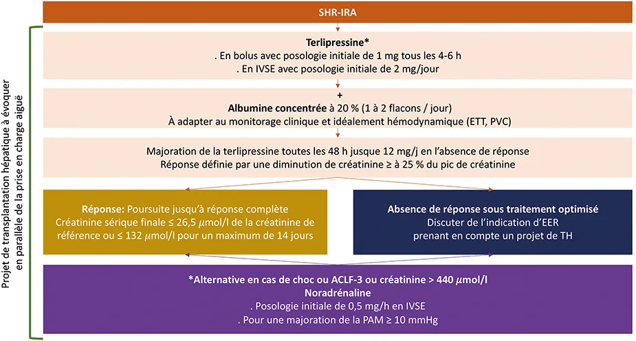Figure 3 : Algorithme de prise en charge du syndrome hépatorénal-insuffisance rénale aiguë (SHR-IRA)