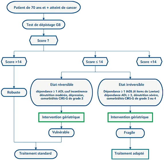 Cette approche multidimensionnelle permet de mieux sélectionner les patients en capacité de recevoir un traitement. Cependant la discussion entre gériatre, oncologue, chirurgien et radiothérapeute doit rester au cœur de la prise en charge et ne peut se substituer à un algorithme.