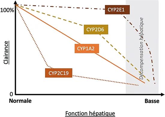 Figure 3 : Baisse de la clairance des CYP en fonction de la fonction hépatique (9)